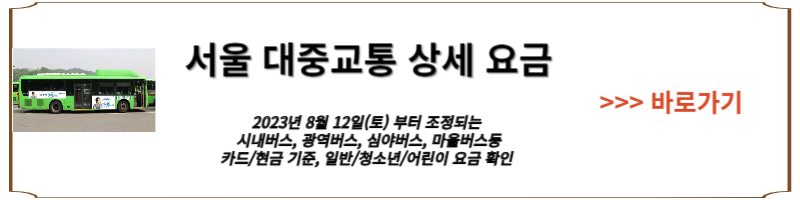 서울시 8월 12일(토)부터 서울버스 요금 조정 시행!!