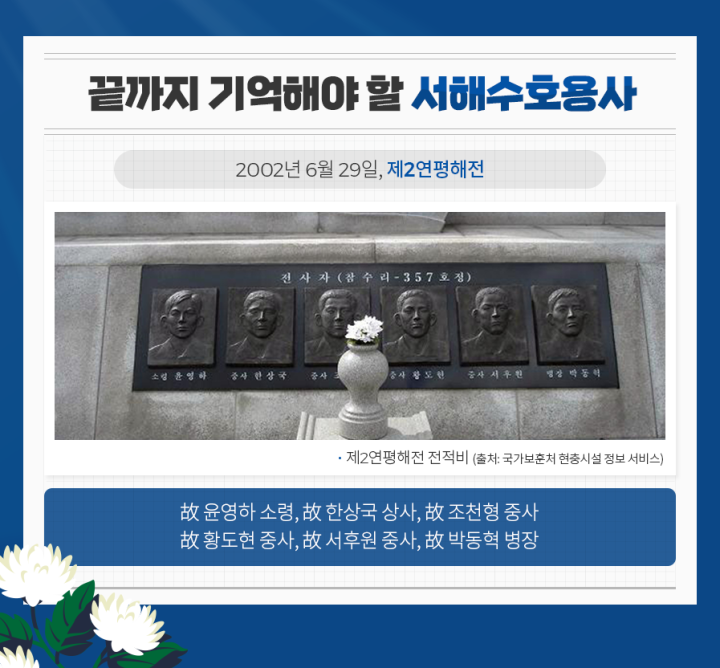 “서해수호 55명 용사의 뜨거운 용기는 대한민국을 지켜낸 자랑스러운 빛입니다. 이들의 헌신을 절대 잊어선 안됩니다.”