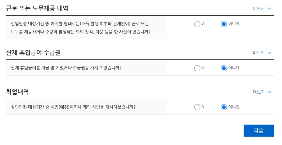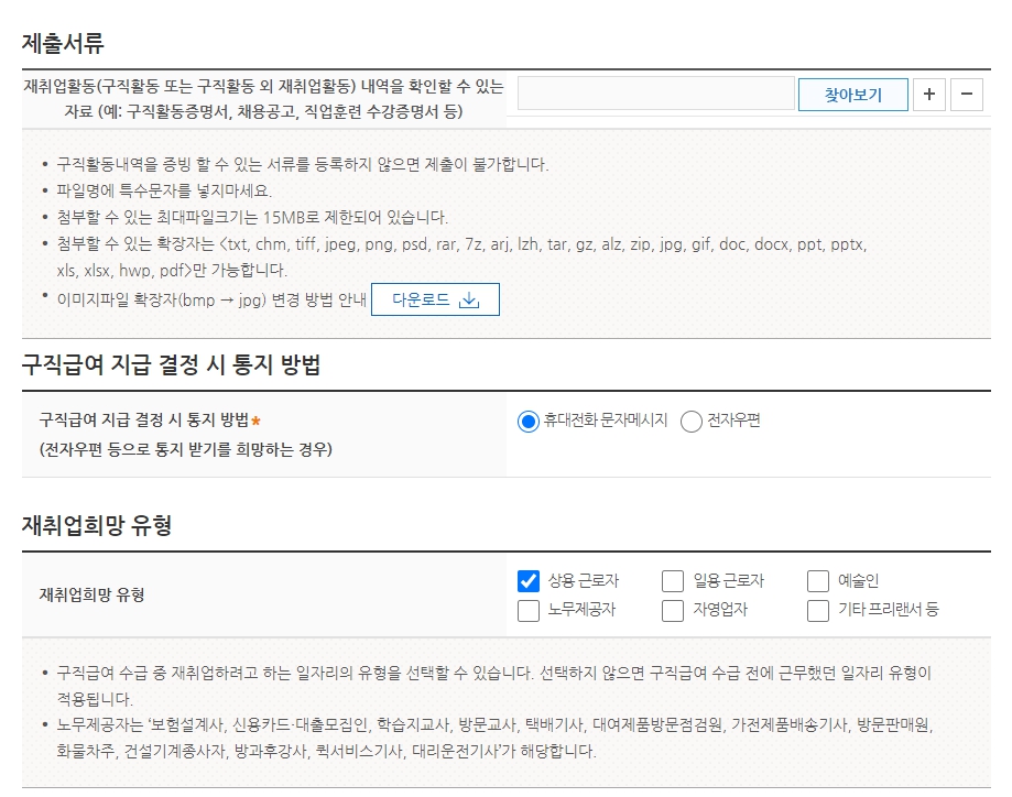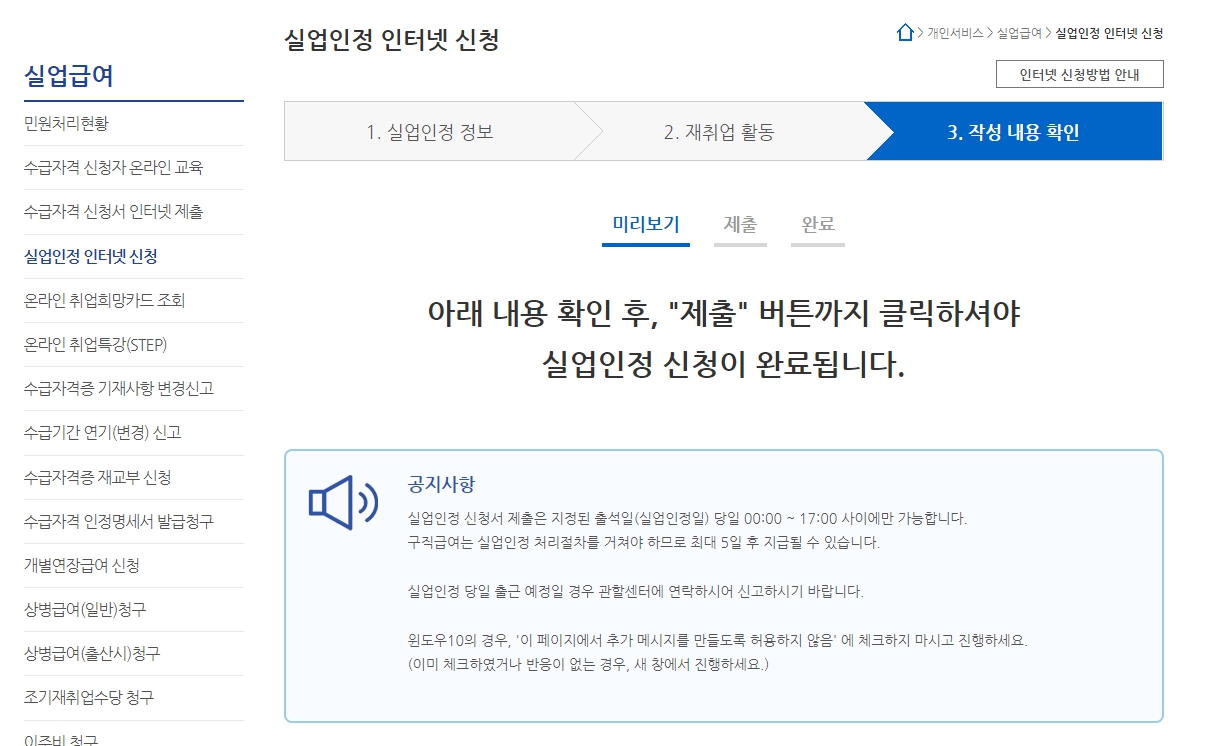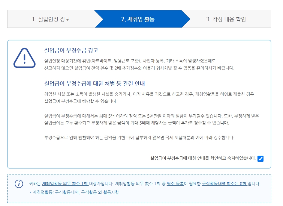 1) '인터넷 실업인정 신청서' 중 꼭 확인하야야 할 사항