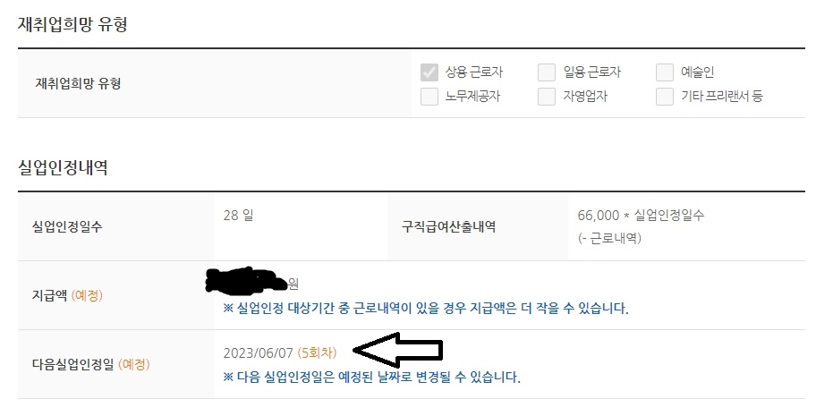'실업인정내역' 에서 다음실업인정일(예정) 은 꼭 확인하고 다음 차수날짜에 위와 같이 수행하여야 합니다.