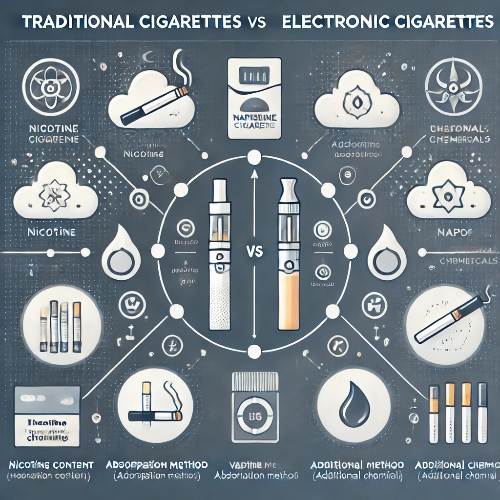 전자담배와 일반 담배의 가장 큰 차이점 중 하나는 니코틴 함량과 흡수 방식입니다. 일반 담배는 연소 과정에서 니코틴이 연기에 포함되어 폐로 흡수되지만, 전자담배는 기화된 액상의 형태로 니코틴을 전달합니다.