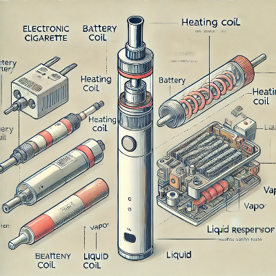 전자담배는 일반 담배와 달리 연소 과정 없이 액체(전자담배 액상)를 가열하여 발생하는 증기를 흡입하는 방식으로 작동합니다. 일반적으로 전자담배는 다음과 같은 주요 구성 요소로 이루어져 있습니다.
