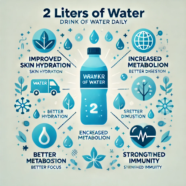 하루 2L의 물을 꾸준히 섭취하면 신체 기능이 원활해지고 다양한 건강상의 이점을 얻을 수 있습니다.