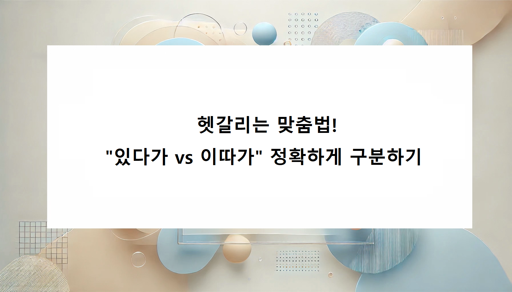 이번 글에서는 "있다가"와 "이따가"의 정확한 차이를 쉽고 간단하게 알려드릴게요.