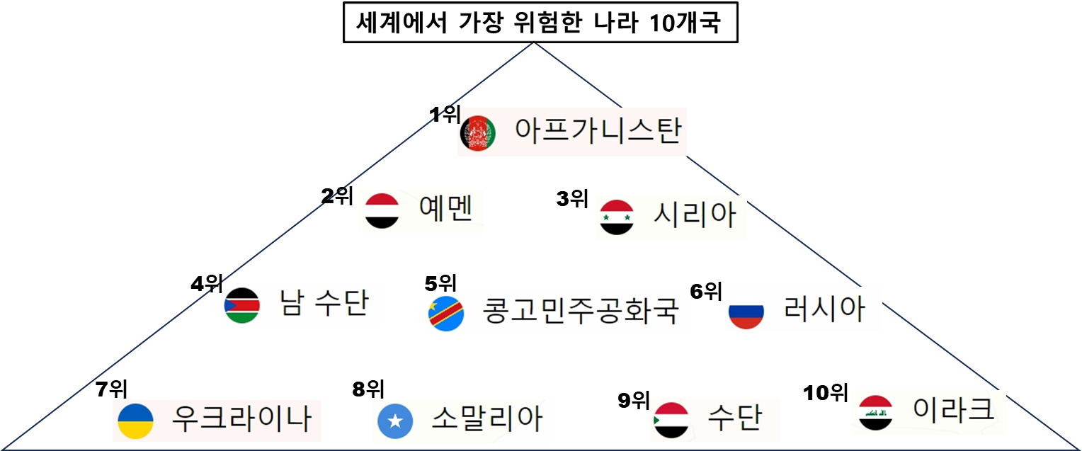 2023년 세계에서 가장 위험한 국가는 다음과 같습니다.