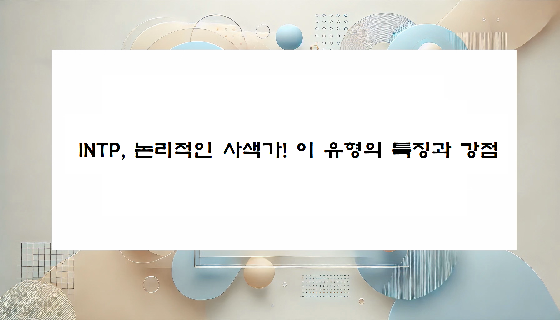INTP는 깊이 있는 사고와 창의적인 문제 해결 능력을 가진 유형으로, 흔히 ‘논리학자(Logician)’라고 불립니다.