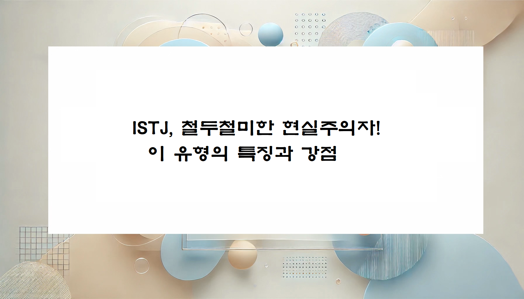 오늘은 ISTJ의 성격 특징, 강점과 단점, 대인관계 스타일, 직업 추천, 연애 스타일 등을 살펴보겠습니다.