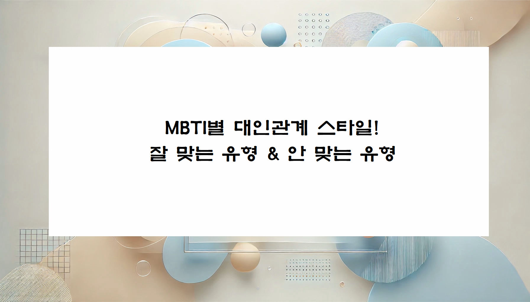사람마다 성격이 다르듯, MBTI 유형별로 대인관계를 형성하는 방식도 다릅니다. 오늘은 MBTI 유형별 대인관계 스타일과 궁합이 좋은 유형 & 조심해야 할 유형을 정리해 보겠습니다.