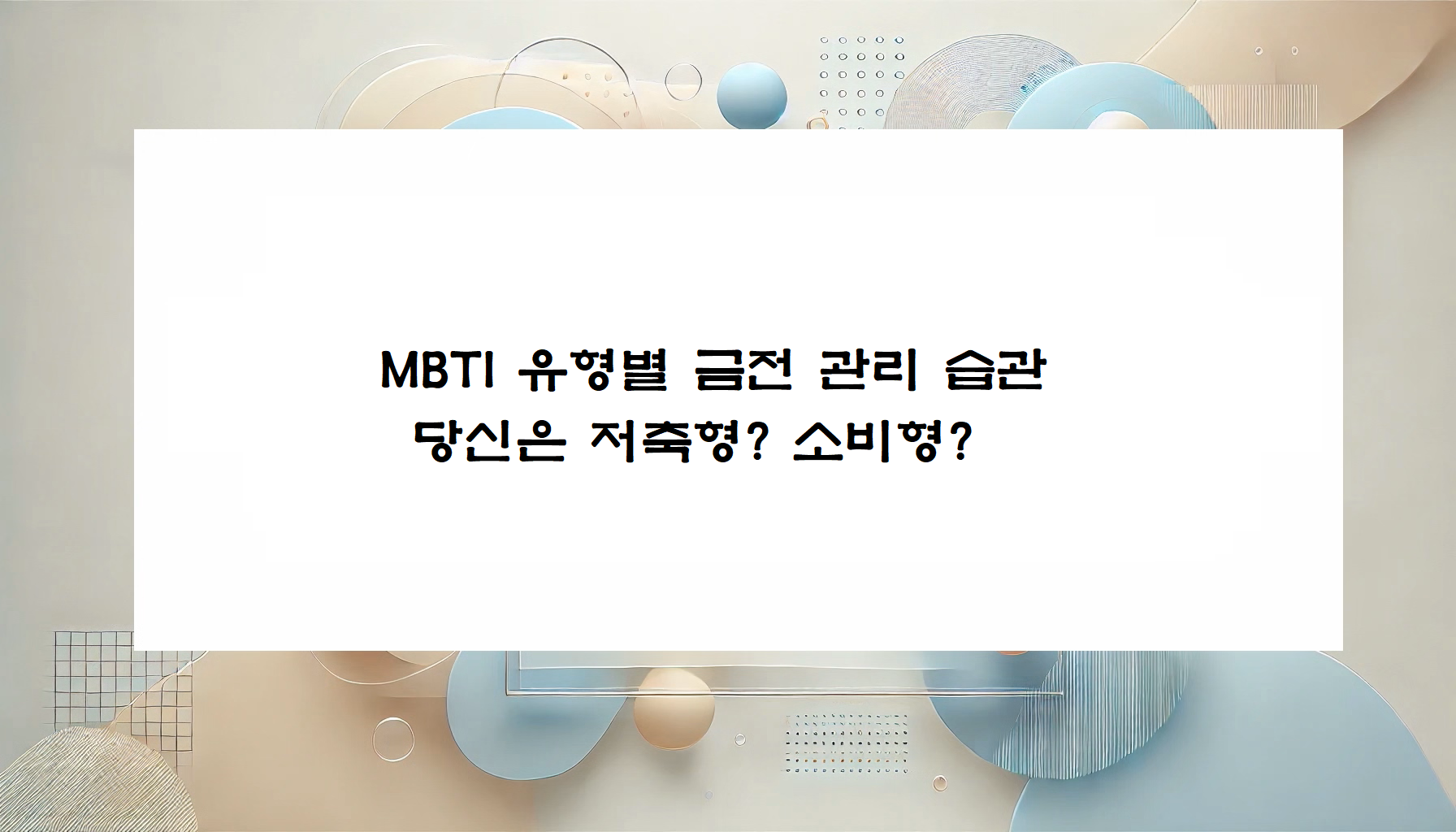 💰 MBTI 유형별 금전 관리 습관 – 당신은 저축형? 소비형?