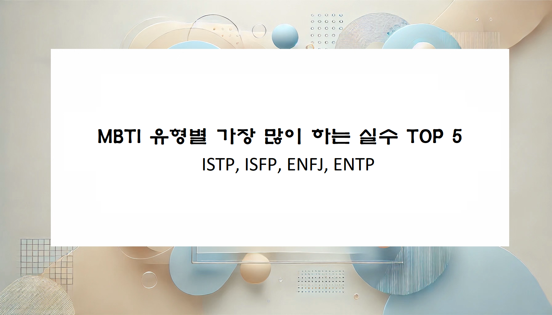 MBTI 유형마다 자주 하는 실수가 다릅니다. 이번에는 ISTP, ISFP, ENFJ, ENTP 유형이 자주 하는 실수를 정리해볼게요! 😊 여러분도 혹시 비슷한 실수를 하고 있지는 않나요?
