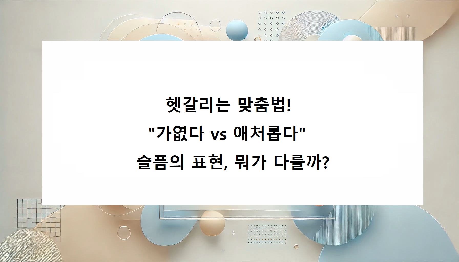 헷갈리는 맞춤법! "가엾다 vs 애처롭다" 슬픔의 표현, 뭐가 다를까?